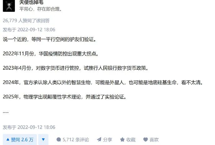 年前在知乎的玄学区瞎逛,偶然看见这个回答,当时第一条算是说准了。