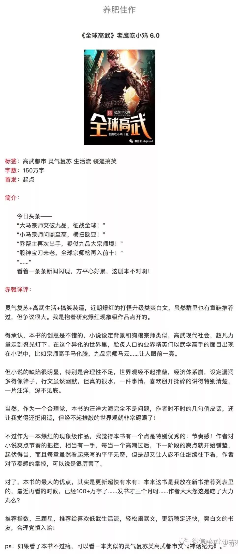 《全球高武》则是今年(18年)的新一代武道复苏文的标杆。