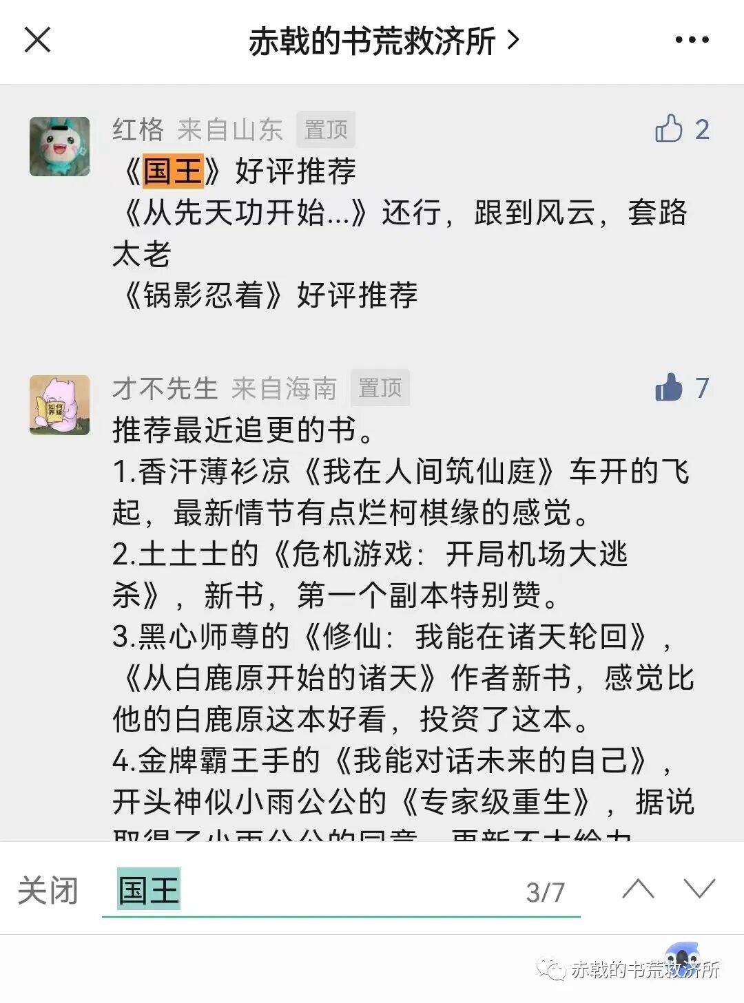 如果你在文章里看到赤戟推了某本书,想瞅瞅书友们对这书的反馈情况,还可以这样用页内搜索,比如“国王”: