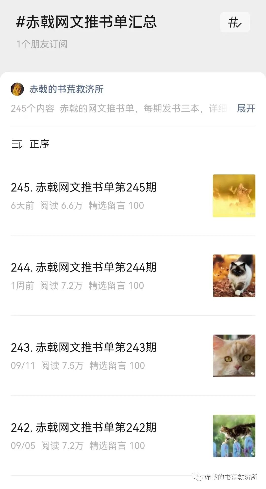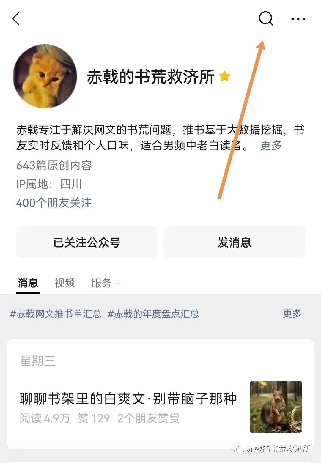 比如,看了赤戟的推书单,想找之前的文章,怎样最快呢,点进一篇最新的推书单文章,