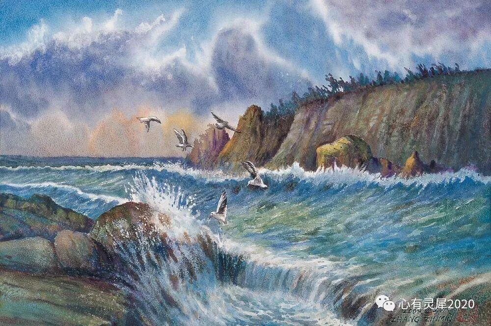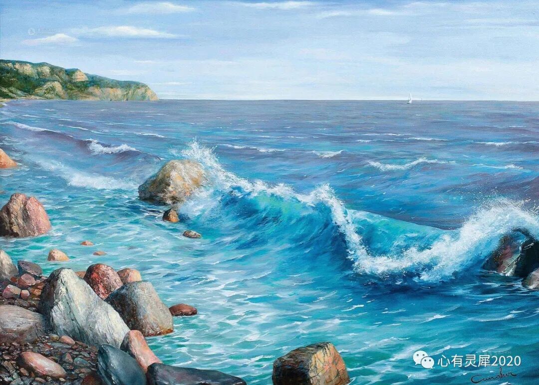 油画中的海浪真得很美,朵朵浪花飞溅,气象万千,波涛汹涌,如照片一般清晰,令人心潮澎湃,也令人心生敬畏!