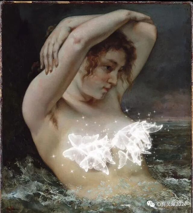 库尔贝的油画,比较大胆,有个性,非常有存在感!画面是一位在海浪里沐浴的女人,朵朵浪花拍打着姑娘洁白无瑕的身躯!