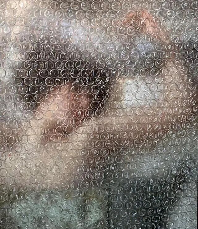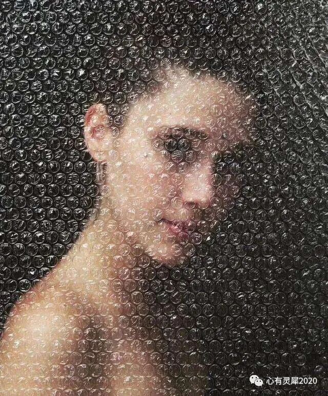 不过别小看这一层泡泡膜,那画起来是相当的不易!画这一个个大小相似,光线不同的透明泡泡,那得有多大的耐心和细心啊!每一个泡泡的缝隙、光影,以及人体和泡泡膜之间如何变换色调、形体等,要把握到恰到好处!你试试看,没那么简单吧!