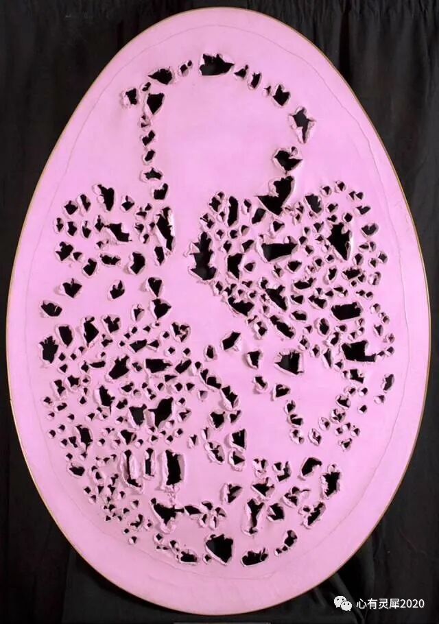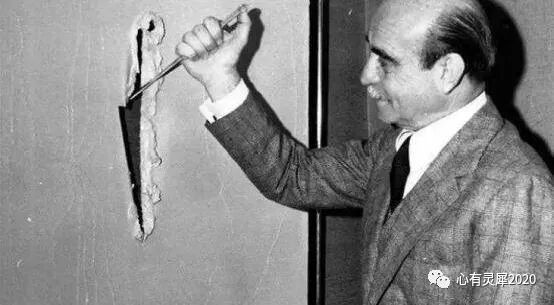 刺穿画布,带有空洞的作品,有些是他当着观赏者创作的,这个异乎寻常的举动,打破了艺术家的惯有思维,是一种全新的突破,而这个刀痕,成了艺术界的一种标志!