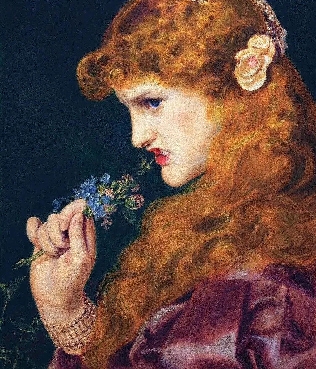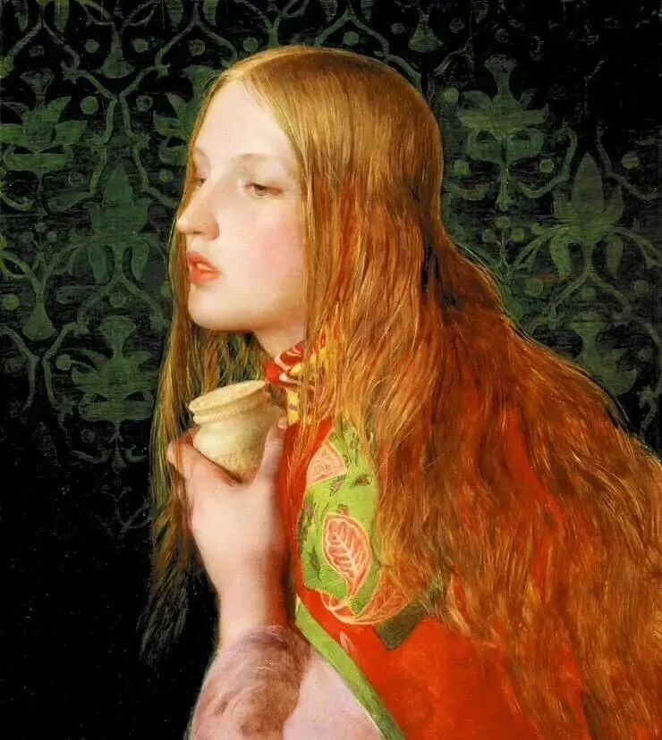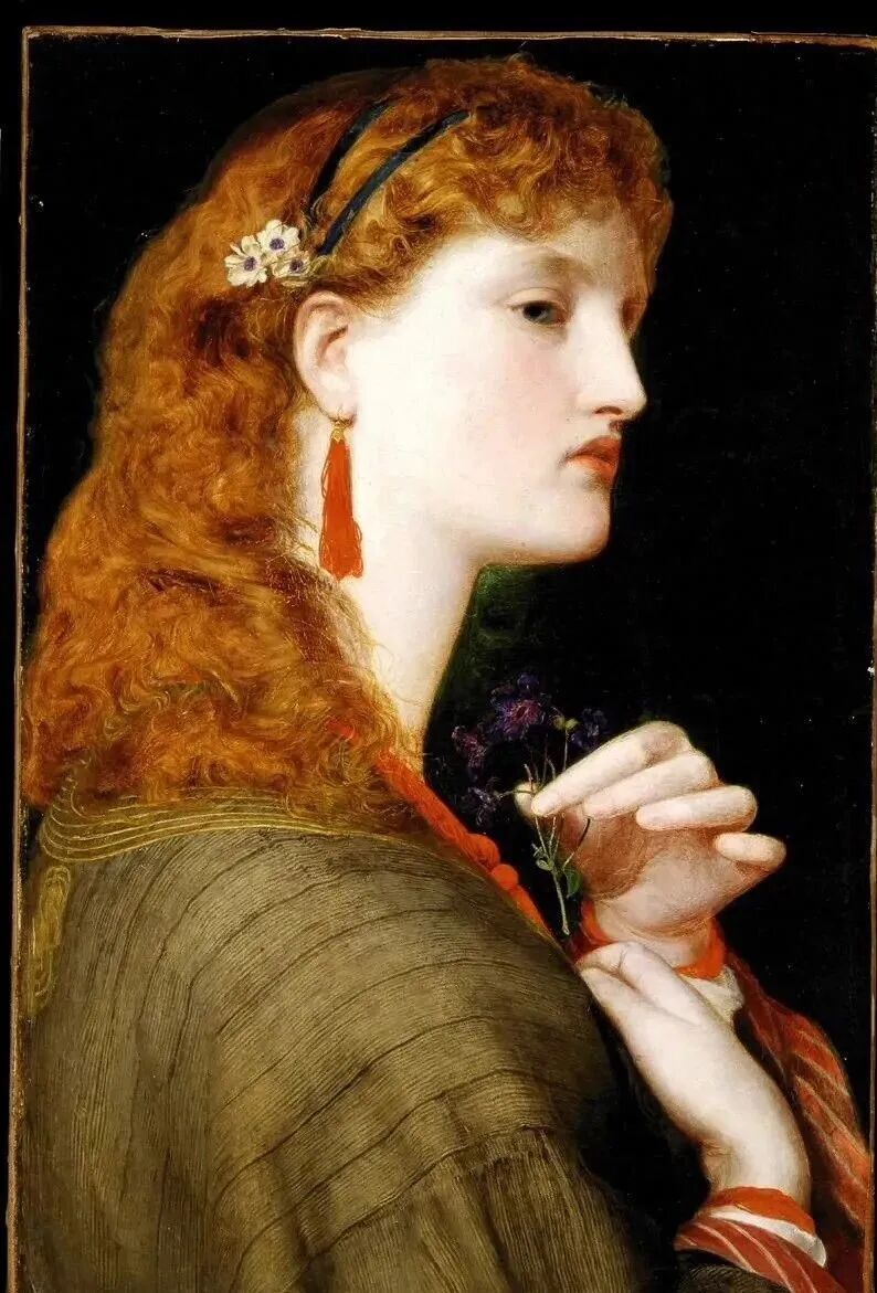 自古艺术家都是风流韵事不断,这也是他们创作灵感的源泉!桑蒂斯也为不同阶段的三个女人画了很多肖像画,每一位都貌美如花,拥有拉斐尔前派画家的修长脖颈!