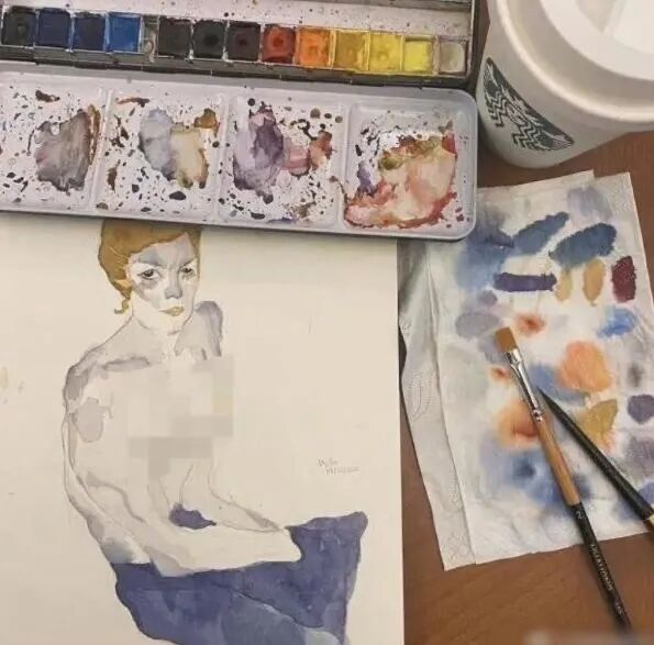 这张是李嫣近期绘画出来的,画的是水彩,人物形象酷似王菲,具有时尚的审美趣味!
