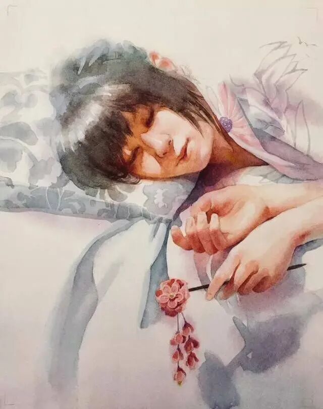 他用水彩画描绘的“东方少女”,柔情似水,温情脉脉,清丽可人,如一朵朵淡雅脱俗的白莲花,在这位帅哥笔下缓缓绽放!