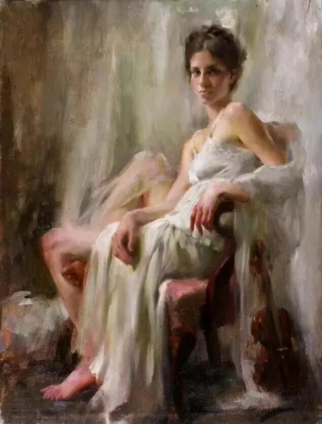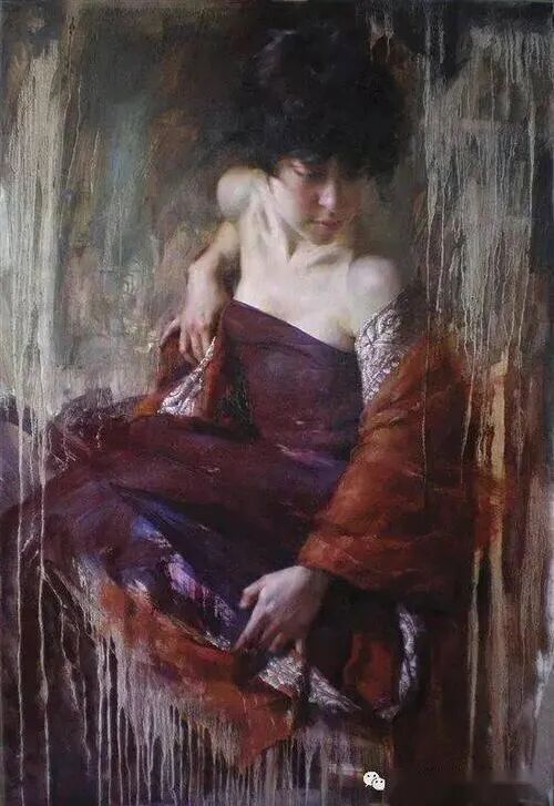 钱·玛丽,她来自中国上海,曾经独自学习中国书画,后又来到美国,她既欣赏中国古代画家,也十分崇拜西方画家!所以她笔下的人物形象,可以说既有东方人含蓄不外露的韵味,也有西方人的洒脱豪放!
