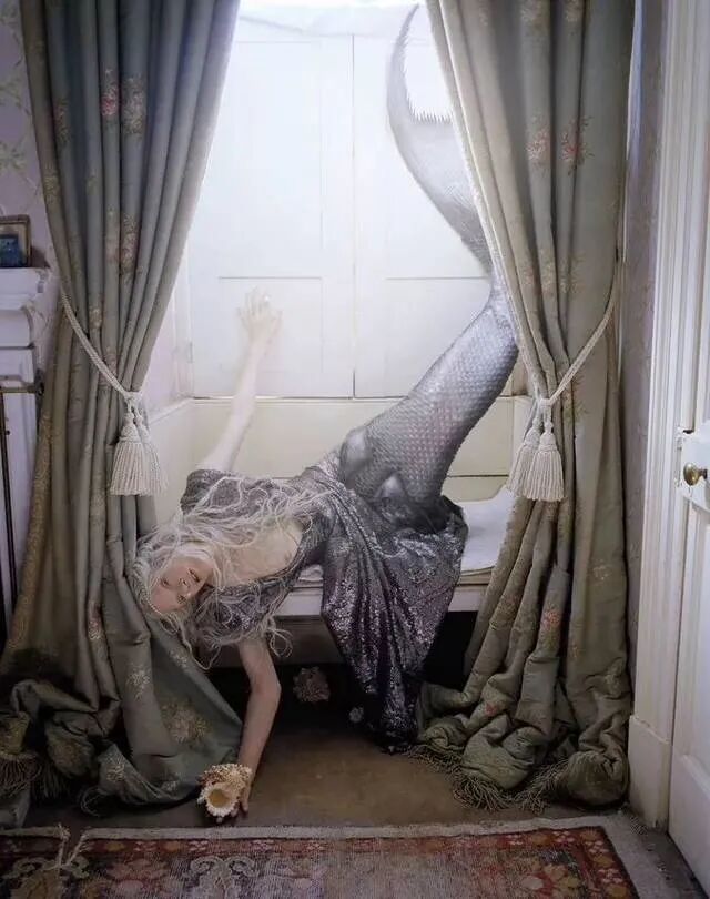 他拍摄的美人鱼系列童话故事,并非如安徒生童话中的那么美好,相反是令人感到恐怖的,压抑的,也带着绝望!人鱼被关在巨型玻璃中,绝望地困在浴缸中的画面,这种负面情绪的影响,很容易让观赏者产生共鸣,给予观赏者更多的目光和关注!