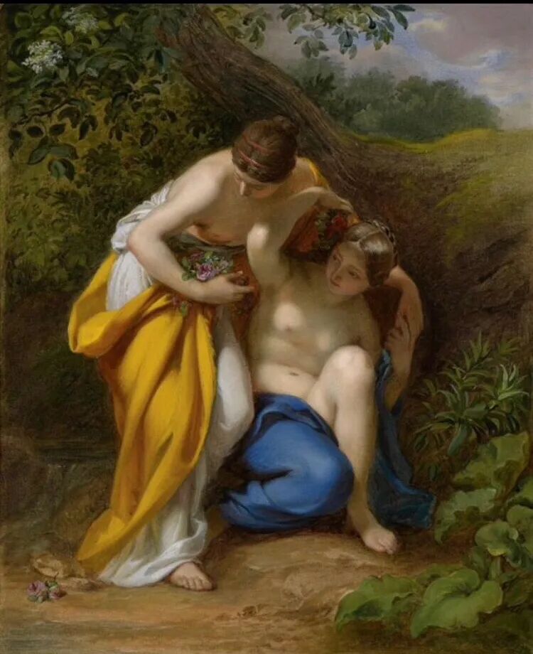 约瑟夫·诺伊格鲍尔创作的油画《两个宁芙在河边》!