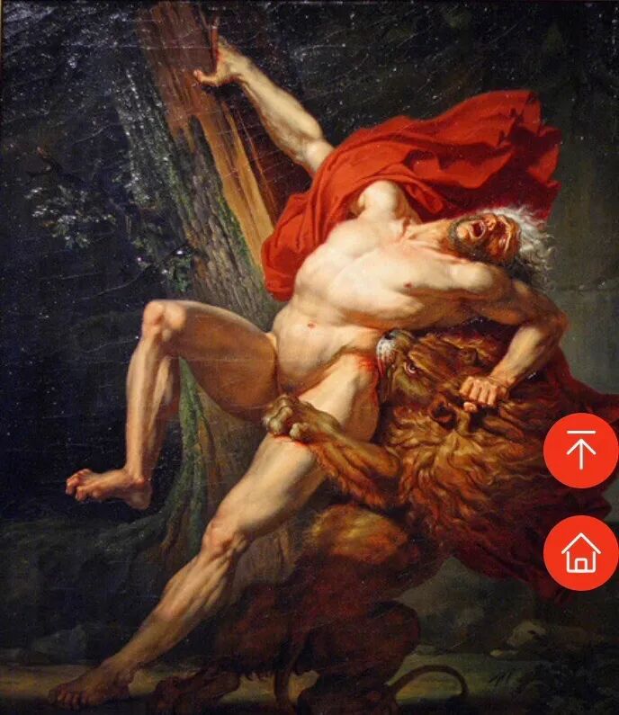 这幅《克罗敦的米洛》,米洛是古希腊著名的运动员,也是奥运会冠军,据说人高马大,力大无穷,战功赫赫,可惜这位勇士却被卡在树杈中,无法抽身而出,最后被一只狮子给咬死了!英雄盖世,所向披靡,不幸死在一只动物口中,也许是命中注定,在劫难逃吧!