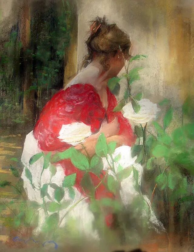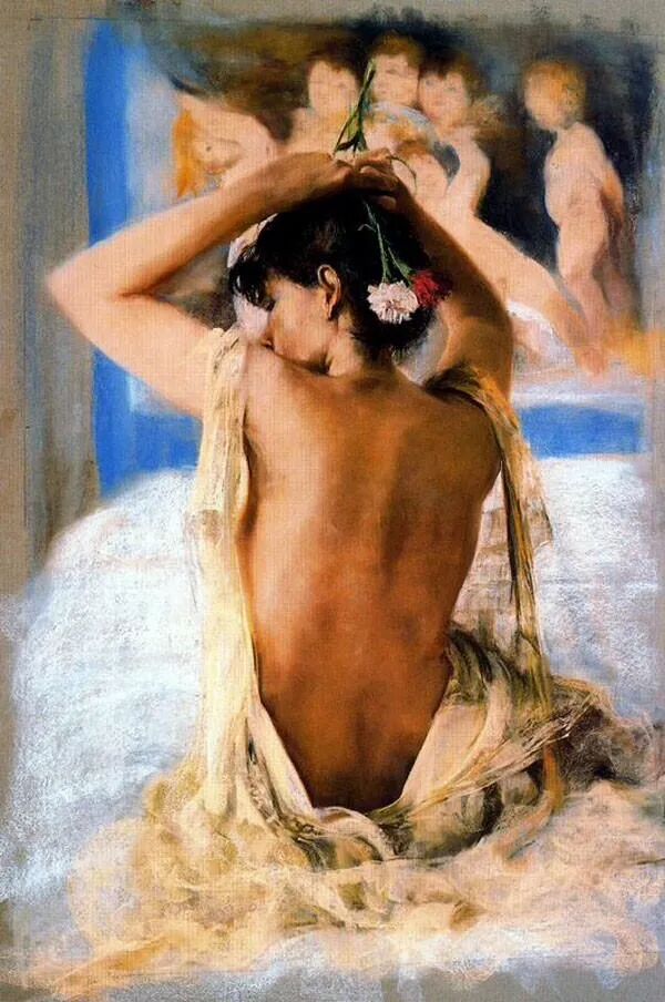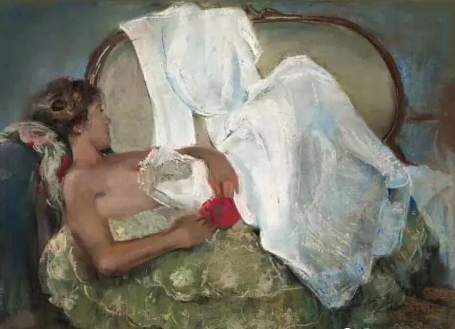 布伊加斯继承了法国印象主义风格,色调淡雅清新内敛,但我们从他具有朦胧美的肖像画中,同样可以感觉到一种强烈的情感体验!越仔细欣赏,就越能体会到从画布中散发出来的那种女性的多情多姿多味!