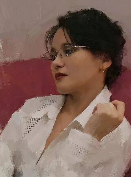欣赏他的作品,除了感受油画的质感,还可以领略细如发丝的美感,而且还会使你一下子陷入他制造的氛围中,云里雾里梦里,不知道置身于云端,还是脚踏实地!