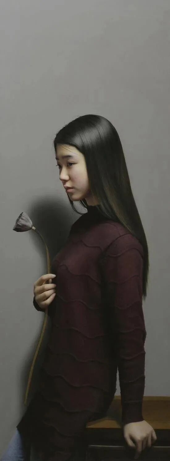 张青的超写实作品确实令人惊叹,其美好纯情古典的画面,精湛的画技令人折服,看着这丝丝缕缕的头发和头皮,我就觉得佩服,这是我欣赏到的国内除冷军之外的第二位画家!