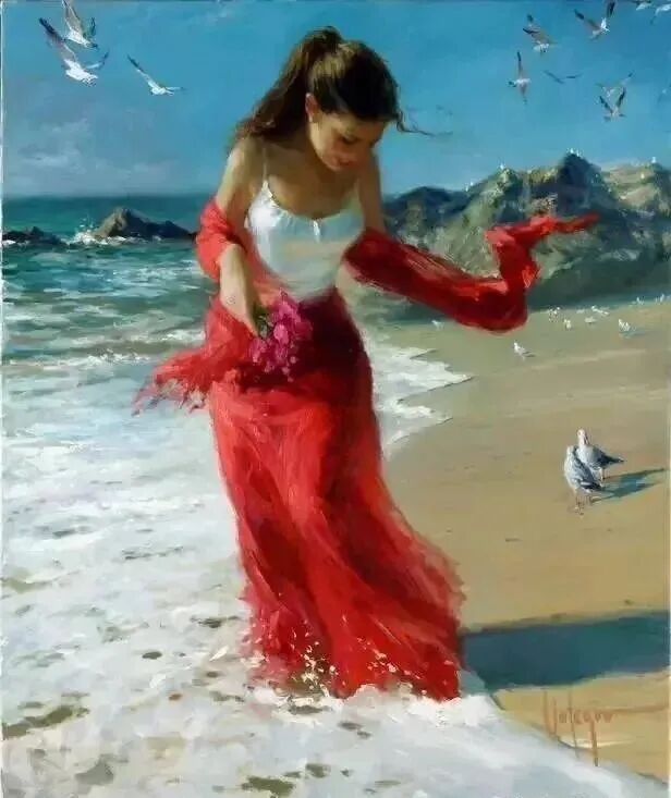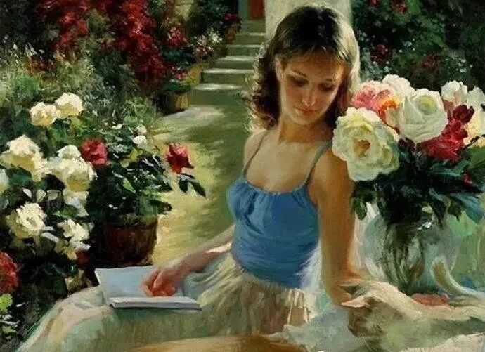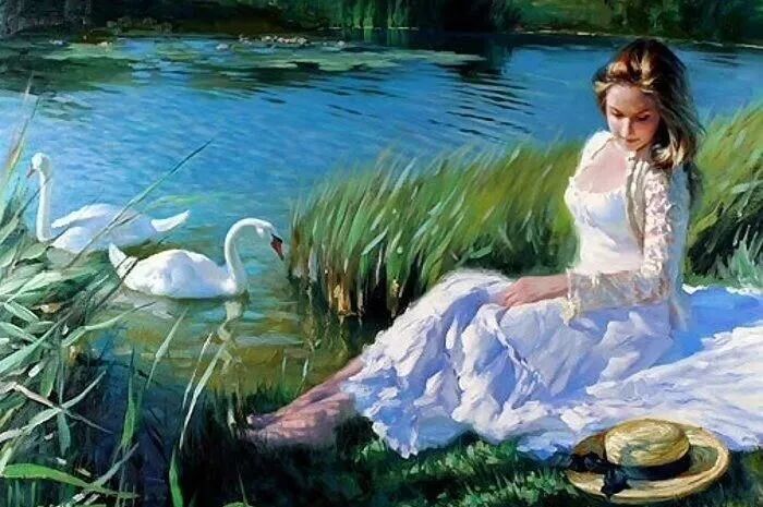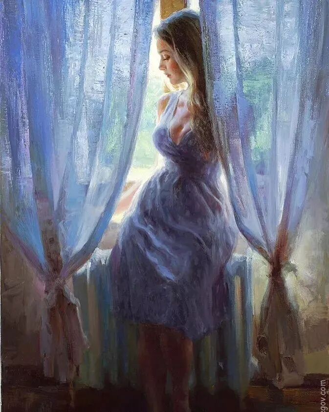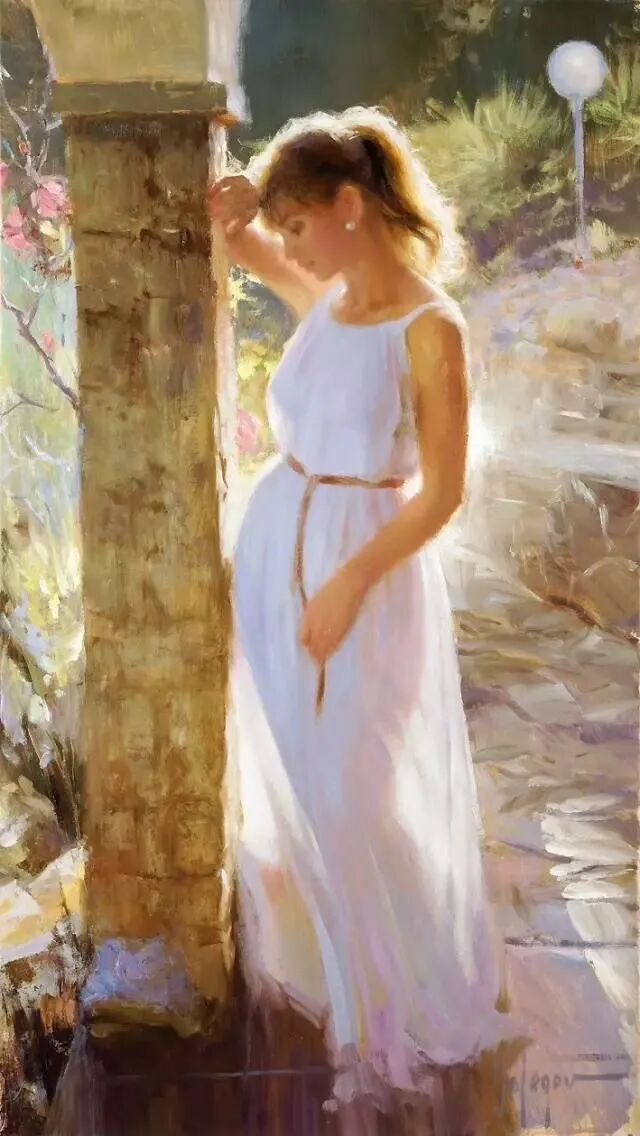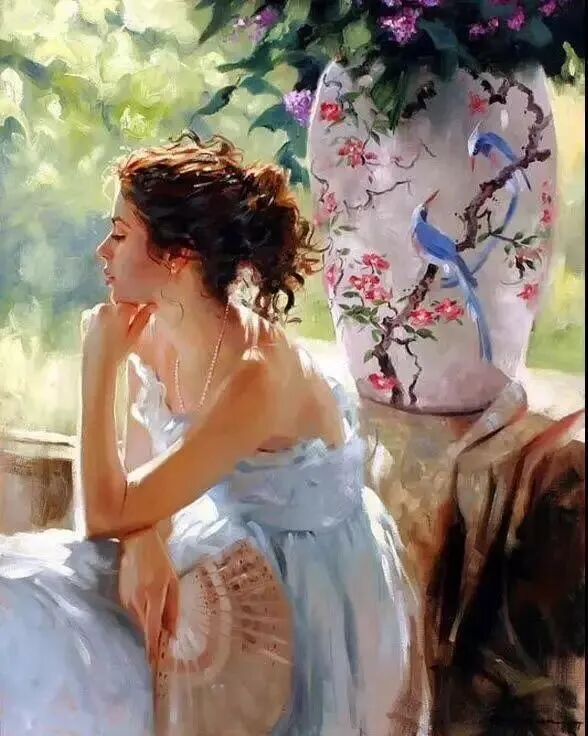 他用一支灵动的笔,一双慧眼,一颗无比热爱生活的灵魂,把每一位女子安放在最浪漫的时光里,最迷人的光和影的氛围里,把她们最美好的瞬间,都停留在他的画布上,是那么美好,动人心弦,令人难忘!