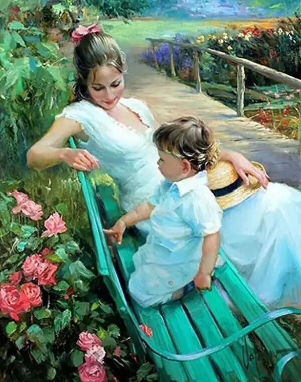 他最擅长于描绘明媚阳光下的女子,最擅于捕捉她们的青春活力,或者是娴静优雅的气质,或者是母性的光辉,或者是童心童趣,或者是享受生活的闲适状态!