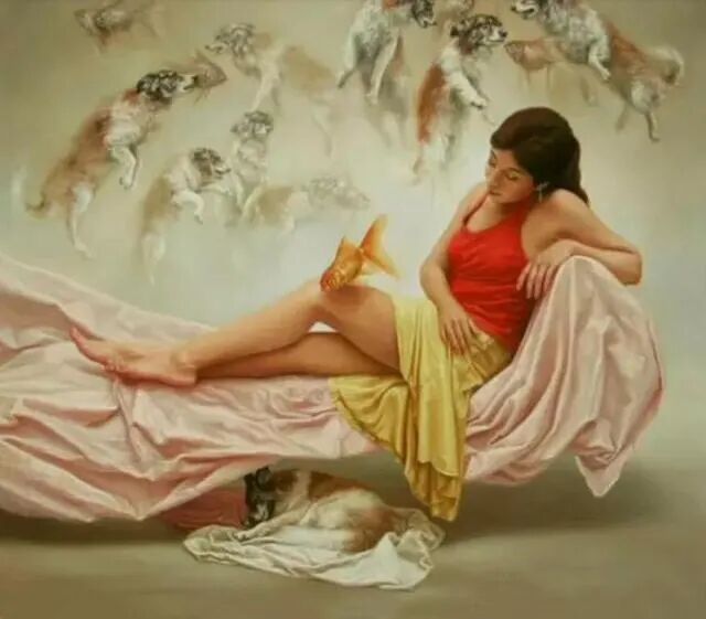 秘鲁画家Renso Castaneda,带着现实主义风格和梦幻般的作品,给我们描绘了很多女孩千姿百态的奇异世界!