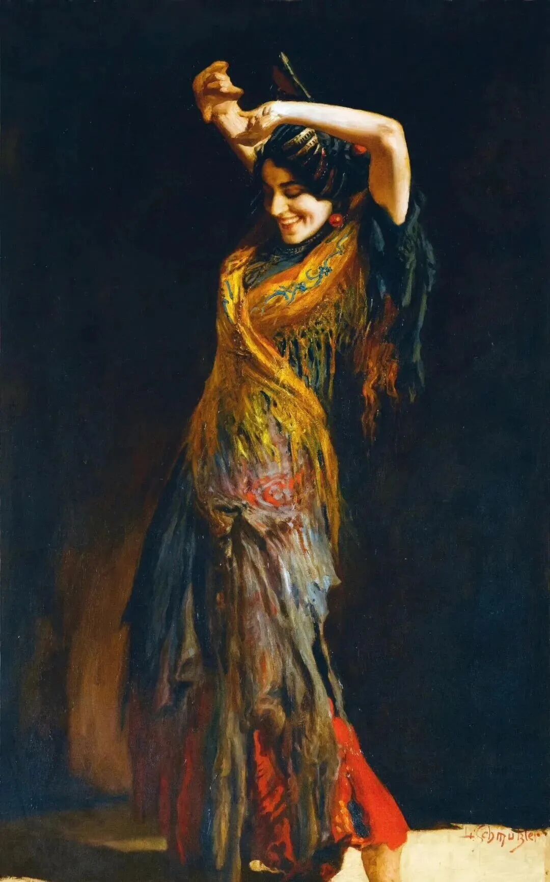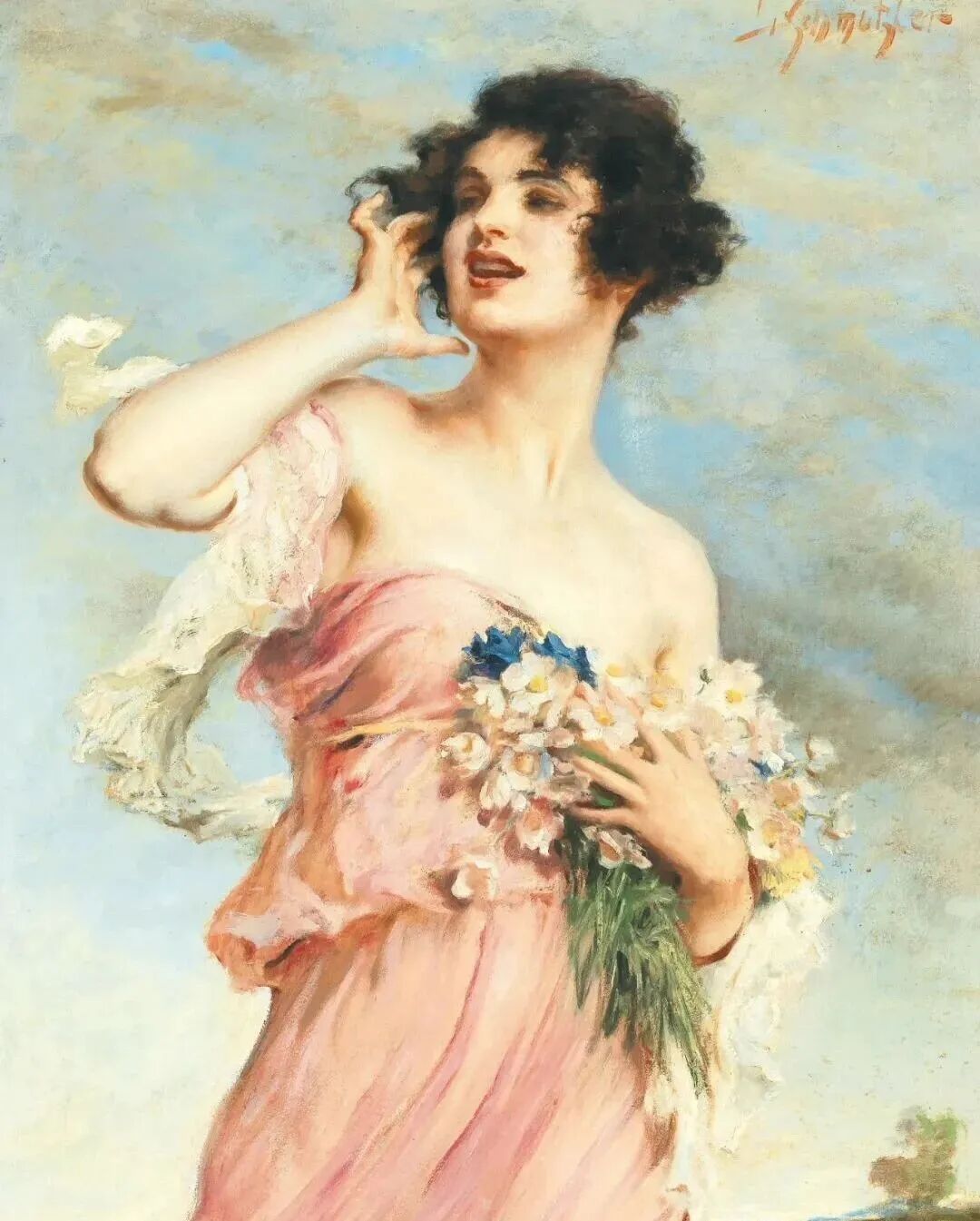 这位德国画家特别擅长刻画女性的媚态,明亮的色彩和服饰的搭配,给人物的举手投足注入了新鲜感和青春活力,使这些女子们在画布这个小小的舞台上,依旧能充分施展自己的各种魅力!