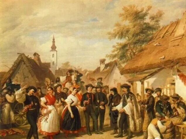 米科洛斯·巴拉巴斯,是匈牙利最有影响的肖像和风俗画家,他的绘画题材非常广泛,包括政治、音乐和文学、宗教领袖、军人和上流社会的男性和女性肖像!前期主要以浪漫主义风俗肖像画为主,后期转向乡村生活,画了很多农民家庭!