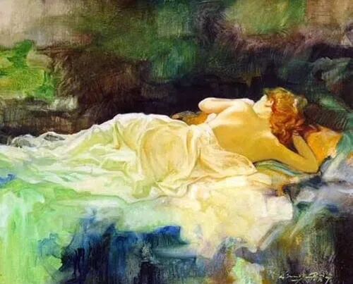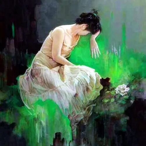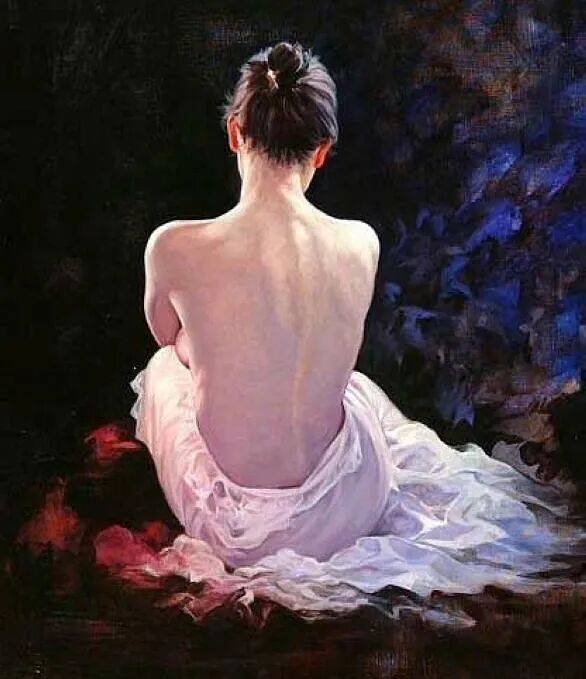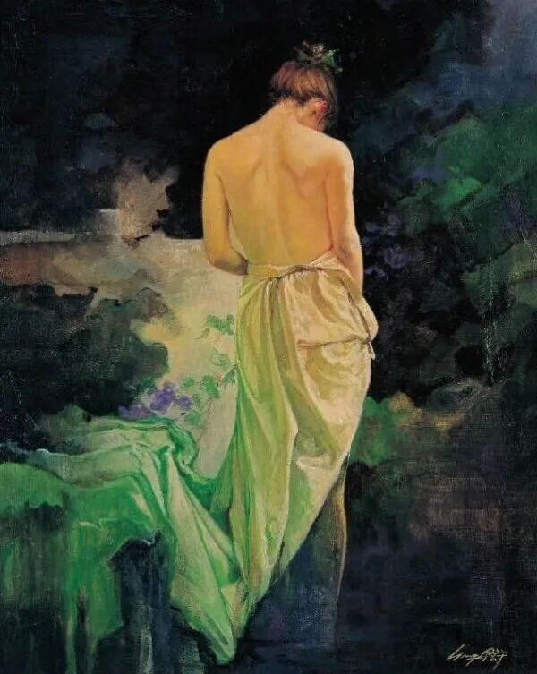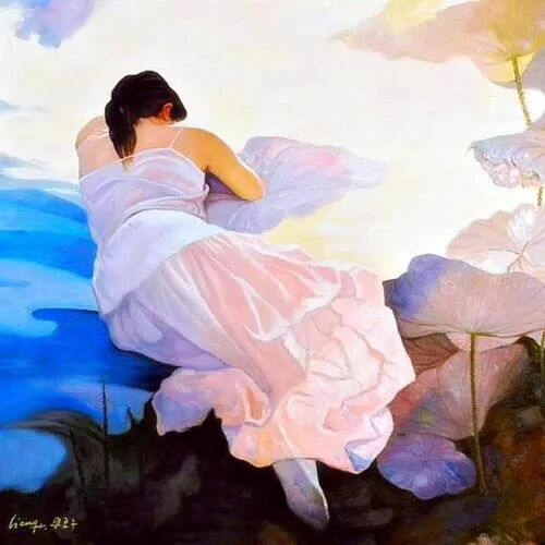 他对描绘女性的美,有自己独到的美感与见解,其笔下的人物有中国女性特有的宁静﹑平和﹑温柔、脱俗的精神状态,好似一朵空谷幽兰,如梦如幻,静静绽放!