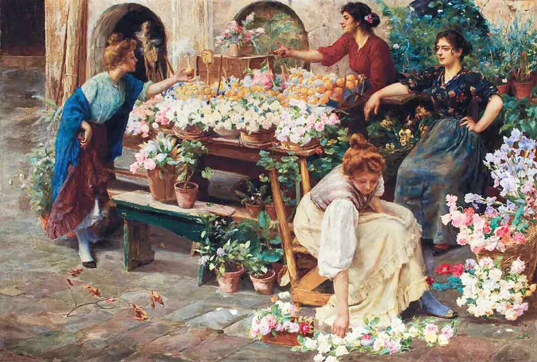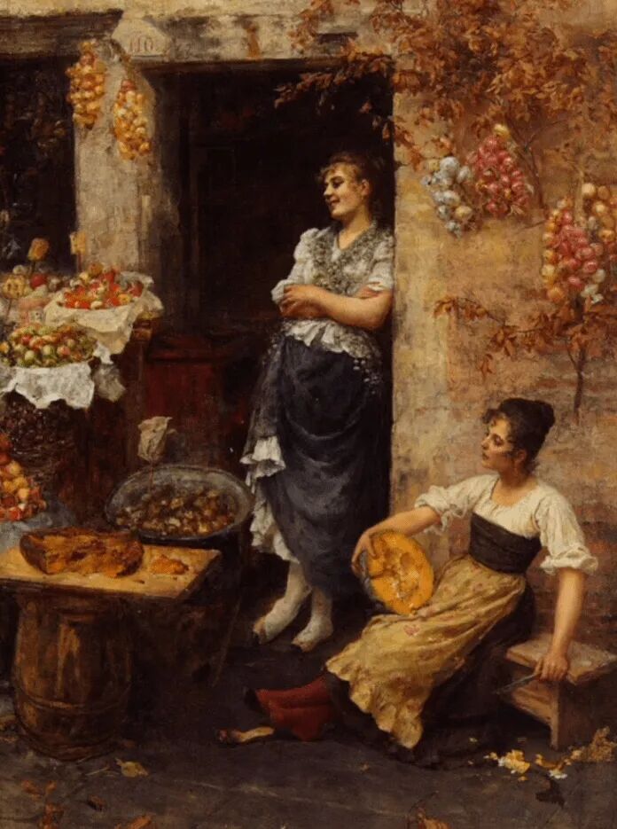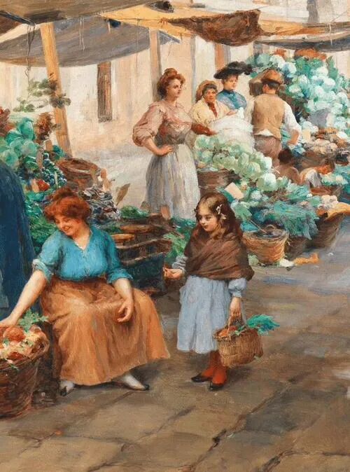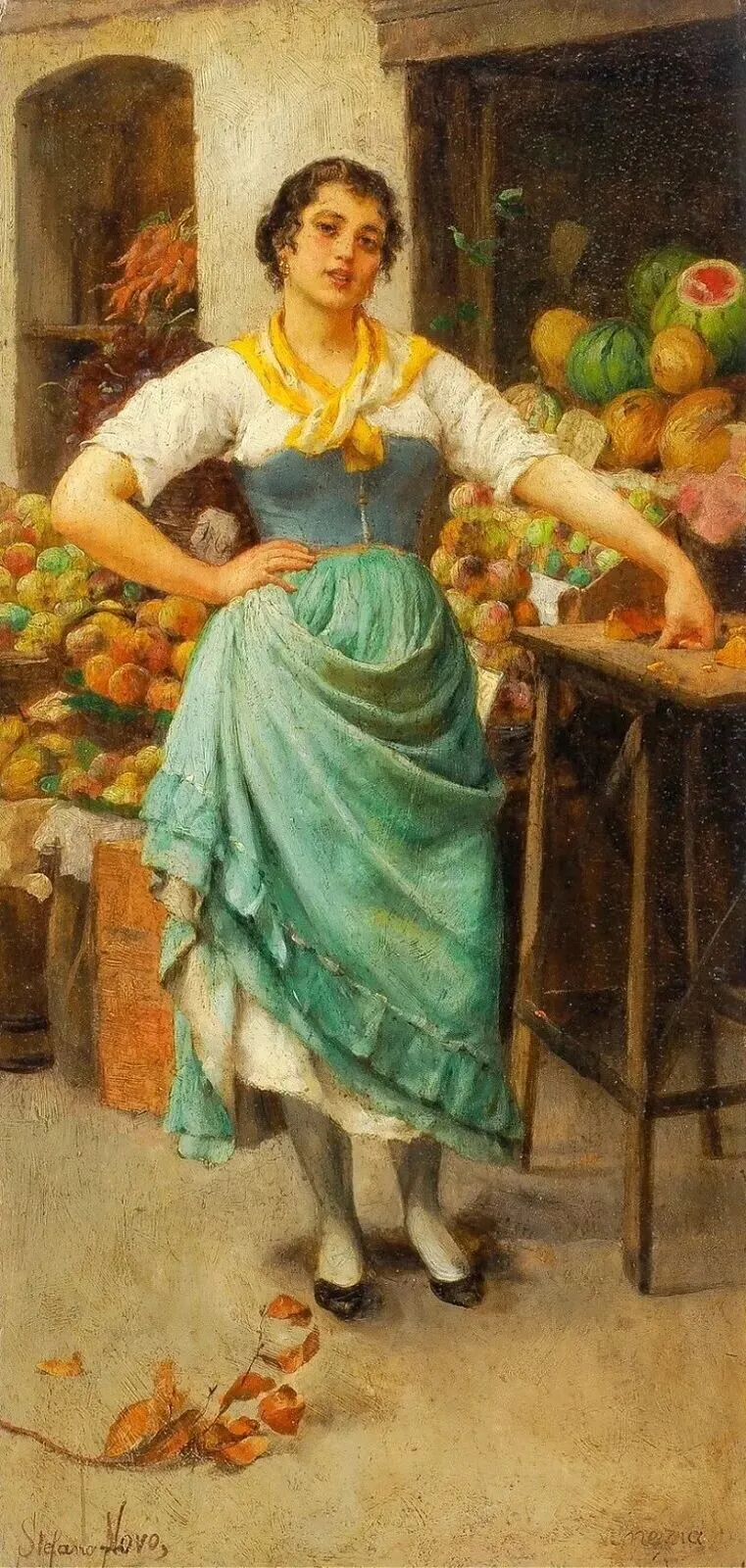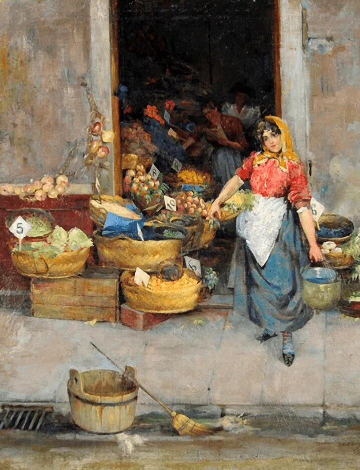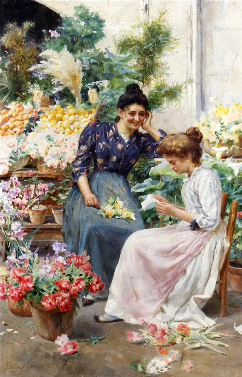 贩夫走卒的商人,我们常常会对她们不屑一顾,可在意大利画家斯特凡诺·诺沃的画笔下,她们是那么的幸福美好!