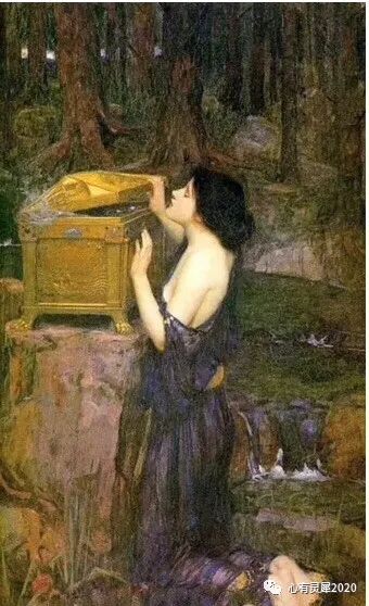 19世纪学院派画家朱尔斯·约瑟夫·莱菲博瑞所创作的《潘多拉》,画面上一位清纯的少女坐在岩石上,下面是静静流淌的溪流,整个氛围显得很宁静!要不是少女手中捧着那个魔盒,那么与画家其他人体肖像差不多,都是身材苗条,体态轻盈飘逸!也许在他心目中,少女与灾难根本没有关系!