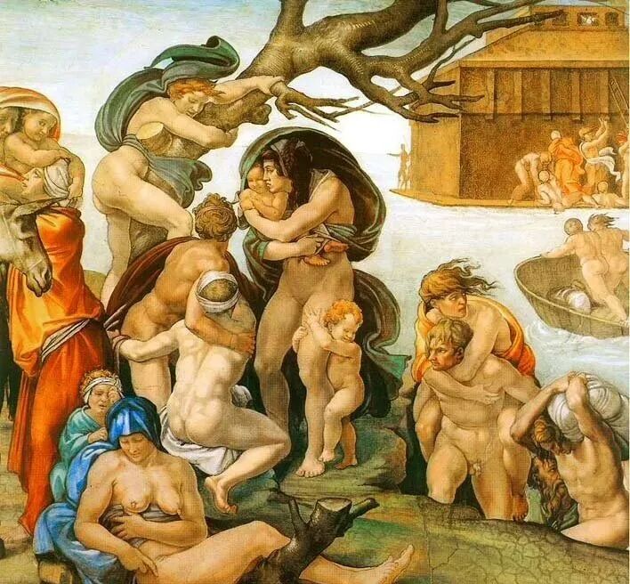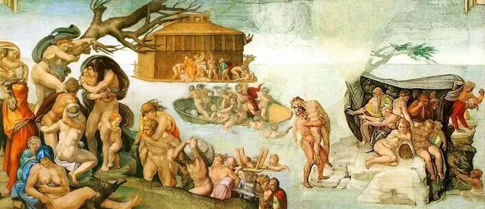 意大利画家米开朗基罗壁画《大洪水》—梵蒂冈西斯廷礼拜堂大厅天顶画!