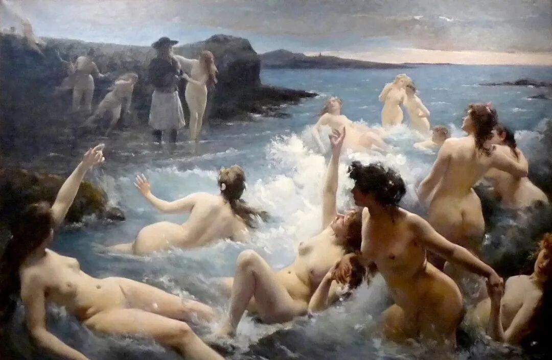 而法国画家Fernand Le Quesne的《洪水》,则充满了大胆而浪漫的想象力。他想到的是美女如云,在汹涌澎湃的洪水中挣扎,拼命地抓住石头和树根,不让无情的水冲走!
