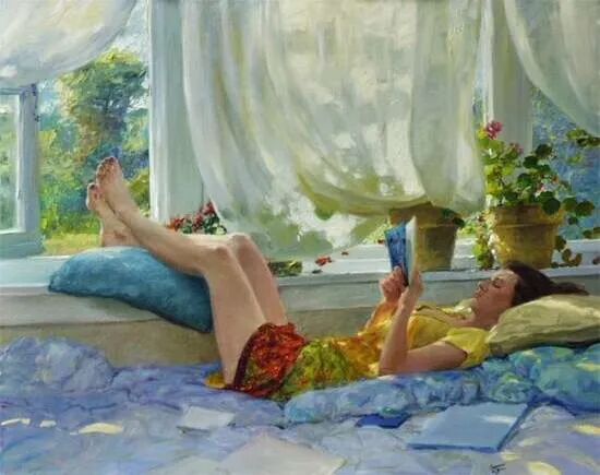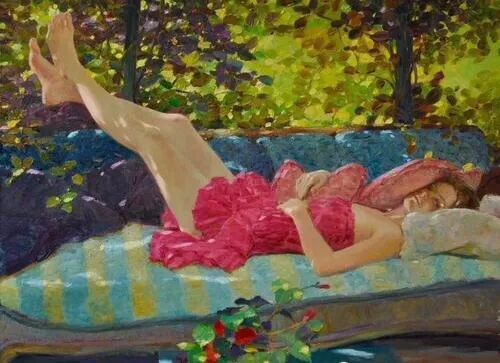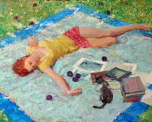 夏日炎炎,心静自然凉,你可以在黑廷格闲适的画作里享受一抹清凉……