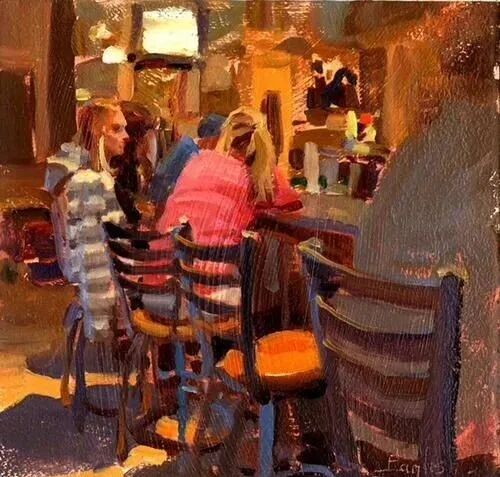 金.英格利什特别擅长描绘日常生活中的美好瞬间,色调明亮清新,并用简单的大笔触,把灿烂的阳光和幸福的瞬间都带进了他的每一幅画里!
