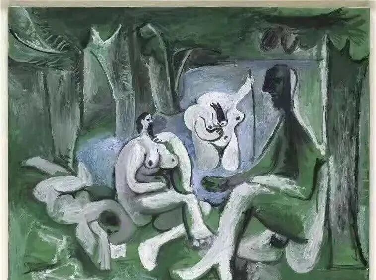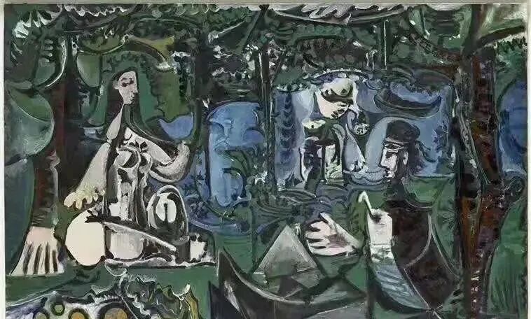 晚年的毕加索也不断从马奈的这幅画作中吸取灵感,画了几幅草地上的午餐变形画,当然他还是那种几何风格,一块块组装起来的!