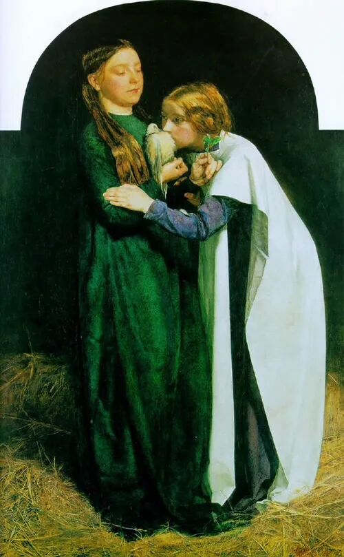 米莱斯没有描绘姐妹俩悲惨的命运,而是用色彩和小动物、彩虹、农作物作铺垫,带给了她们曙光和美好的明天!