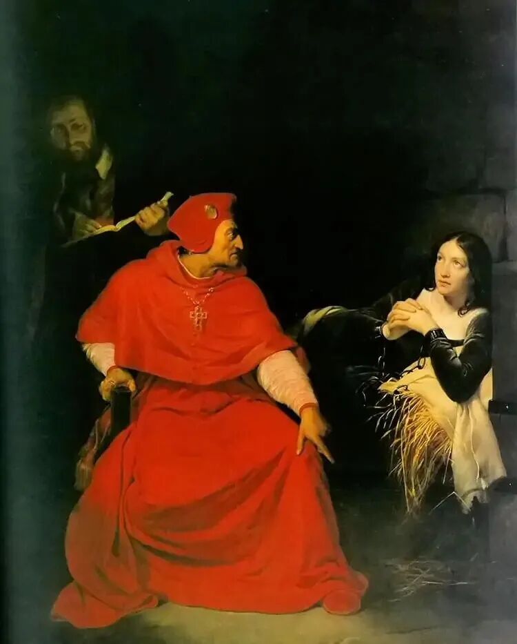 还有他创作了油画《狱中的圣女贞德 》,让这位民族英雄的故事家喻户晓!画面上美丽的少女贞德手上和脚上都戴了锁链,红衣主教在给他做临死前的祈祷!贞德最后被判处火刑,被烧死时年仅19岁。
