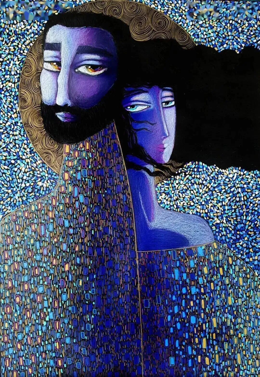 梅尔特别擅长用墨水和水粉作画,并用金色点缀!