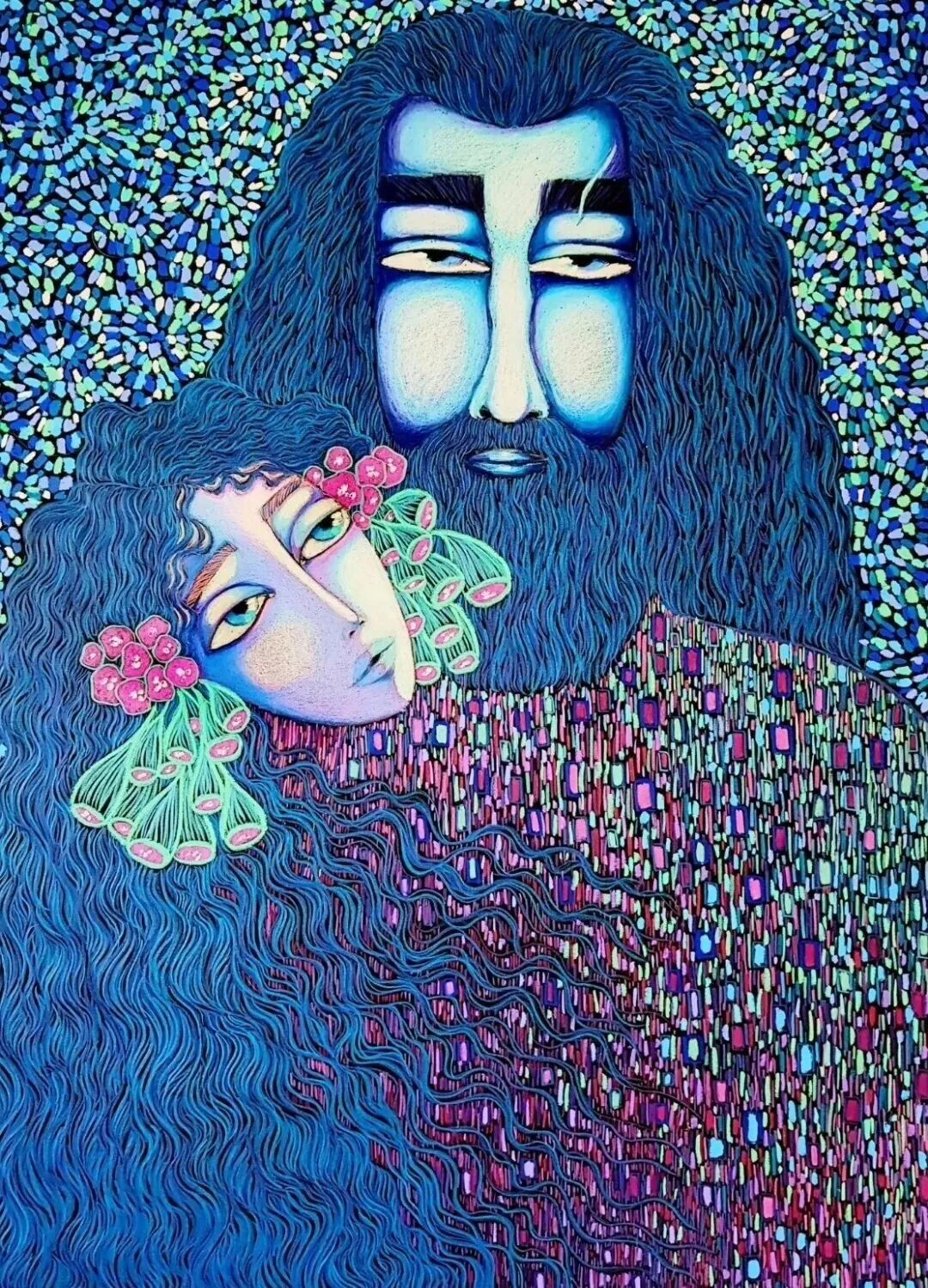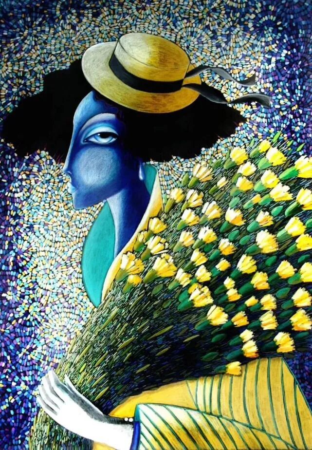 梅尔的作品,是一个五彩缤纷,头晕目眩,令人着迷的世界,一下子把观者给吸引了,醉倒在花团锦簇的色彩里,忘了来时的路,左奔右突,竟然没有出口了,那就只好继续停留……