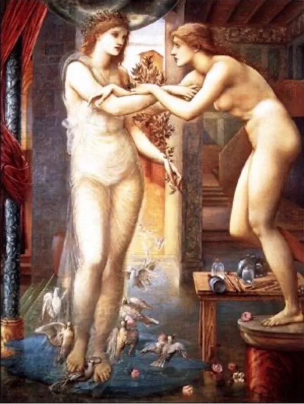 此外伯恩也给莫里斯的《人间伊甸园》做了十二幅插画,如《潘和普西克》、《皮格马利翁和雕塑》等!