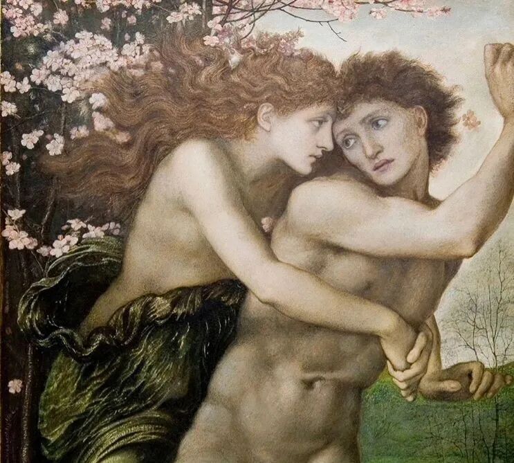 拉斐尔前派画家,罗塞蒂的好朋友伯恩-琼斯,以亚瑟王传说,圣经故事,希腊神话为主题创造了一大批充满浪漫主义情调的杰作!而这幅《菲莉丝与得摩丰》就是他的代表作之一!