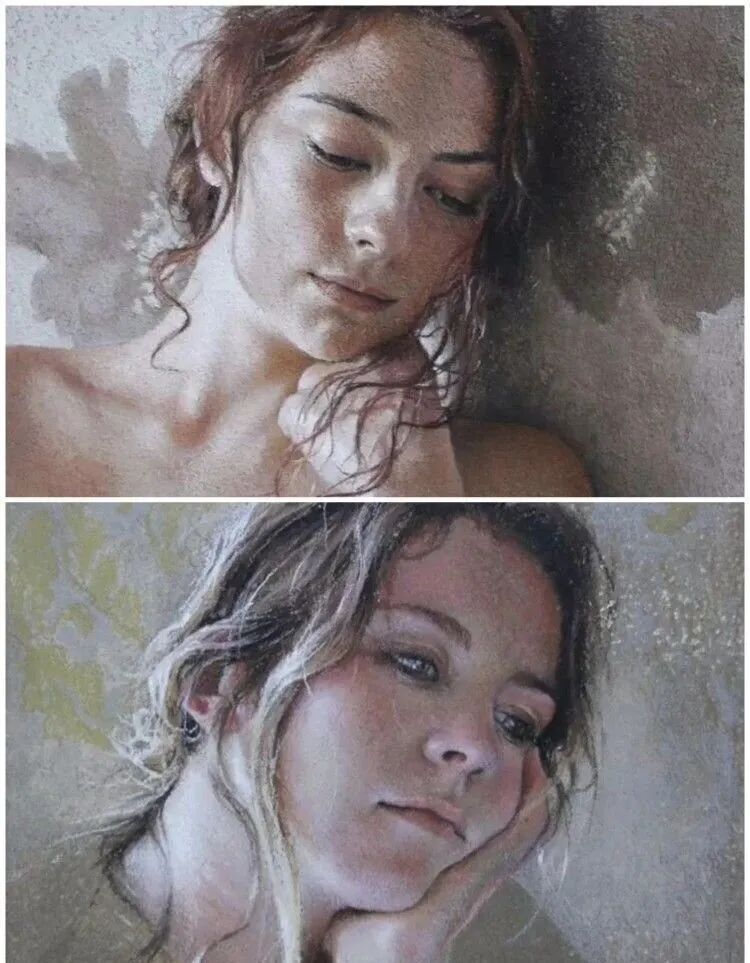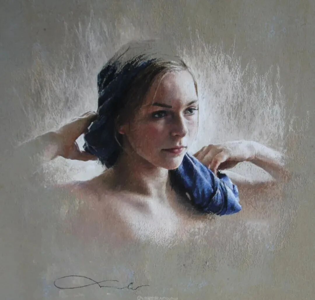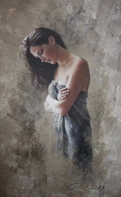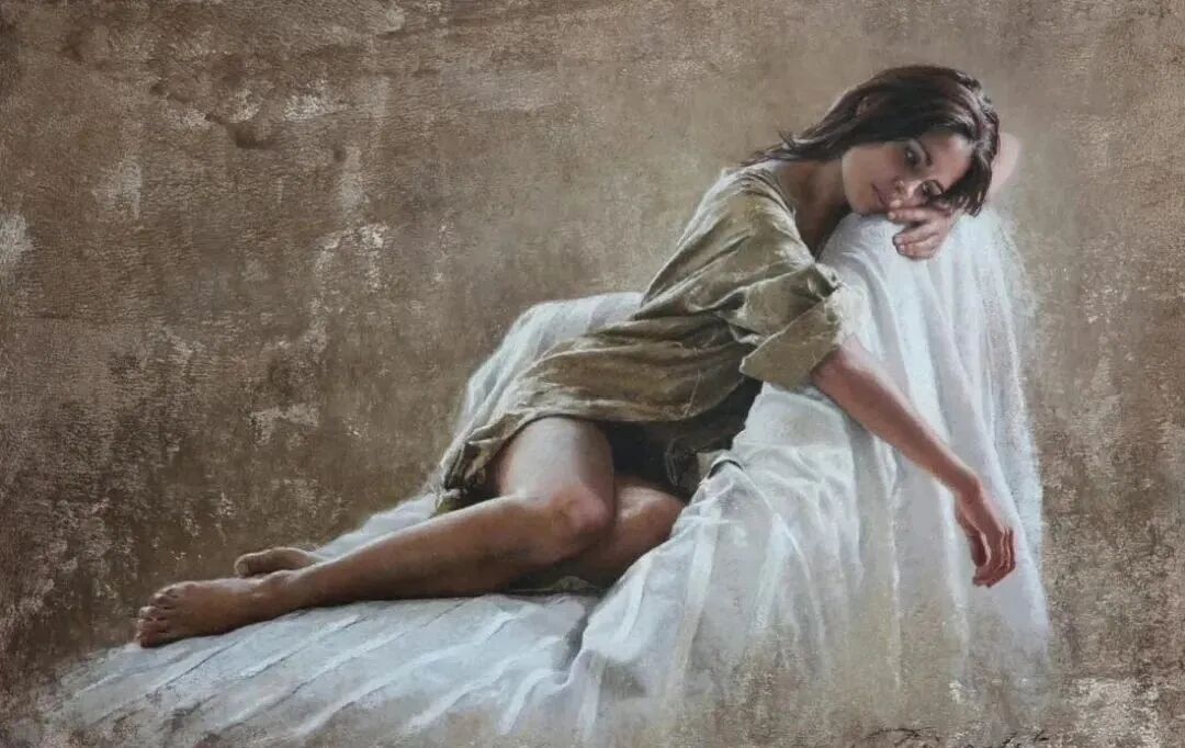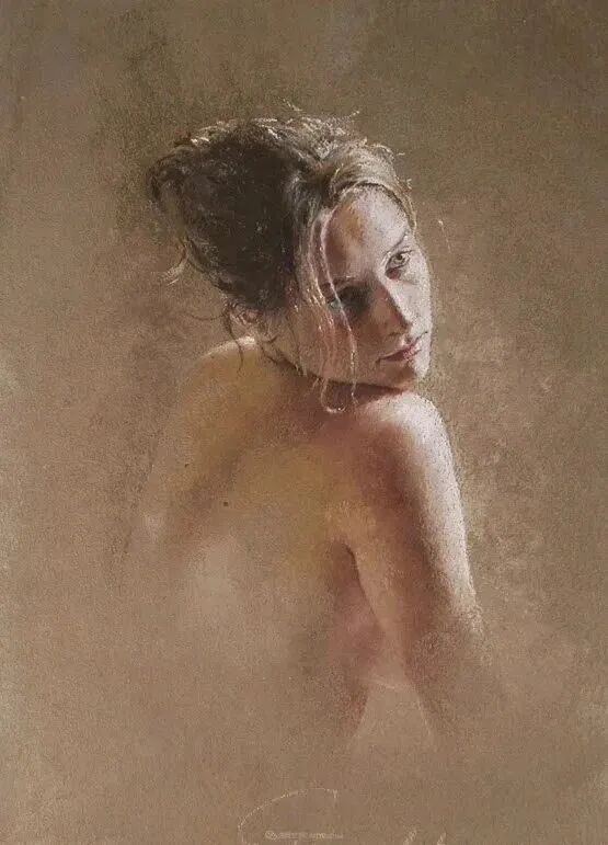 娜塔莉笔下的女人,肌肤细腻,色彩柔和,神态自然,显得柔情似水!看似沉默不语,却似有千言万语,如泣如诉!