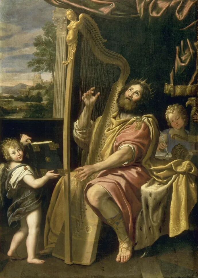 在西方艺术家笔下的弹竖琴画作中,有女子,也有男子,不仅为画面增添了音乐感,也渲染了某种诗意的情绪和氛围……