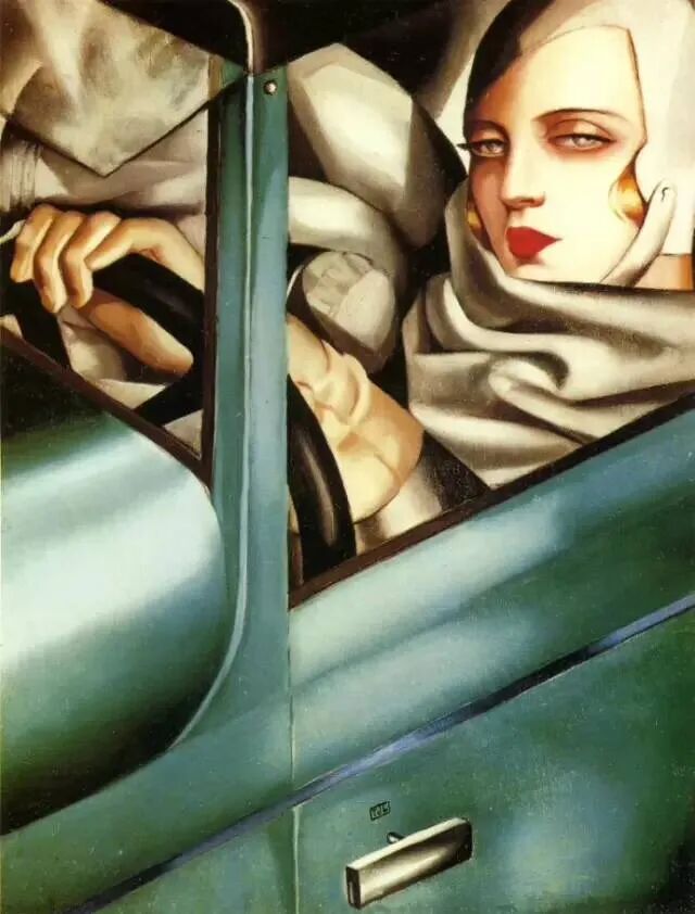 这幅画描绘了塔玛拉自己驾驶着一辆绿色的布加迪赛车,戴着皮制头盔,白色长手套,裹着一条丝绸围巾,眼神坚定,向着自己理想的目标努力拼搏前进!豪车美女,独立自由富足,这也许就是画家追求的生活,这也是作为现代独立女性的宣言!