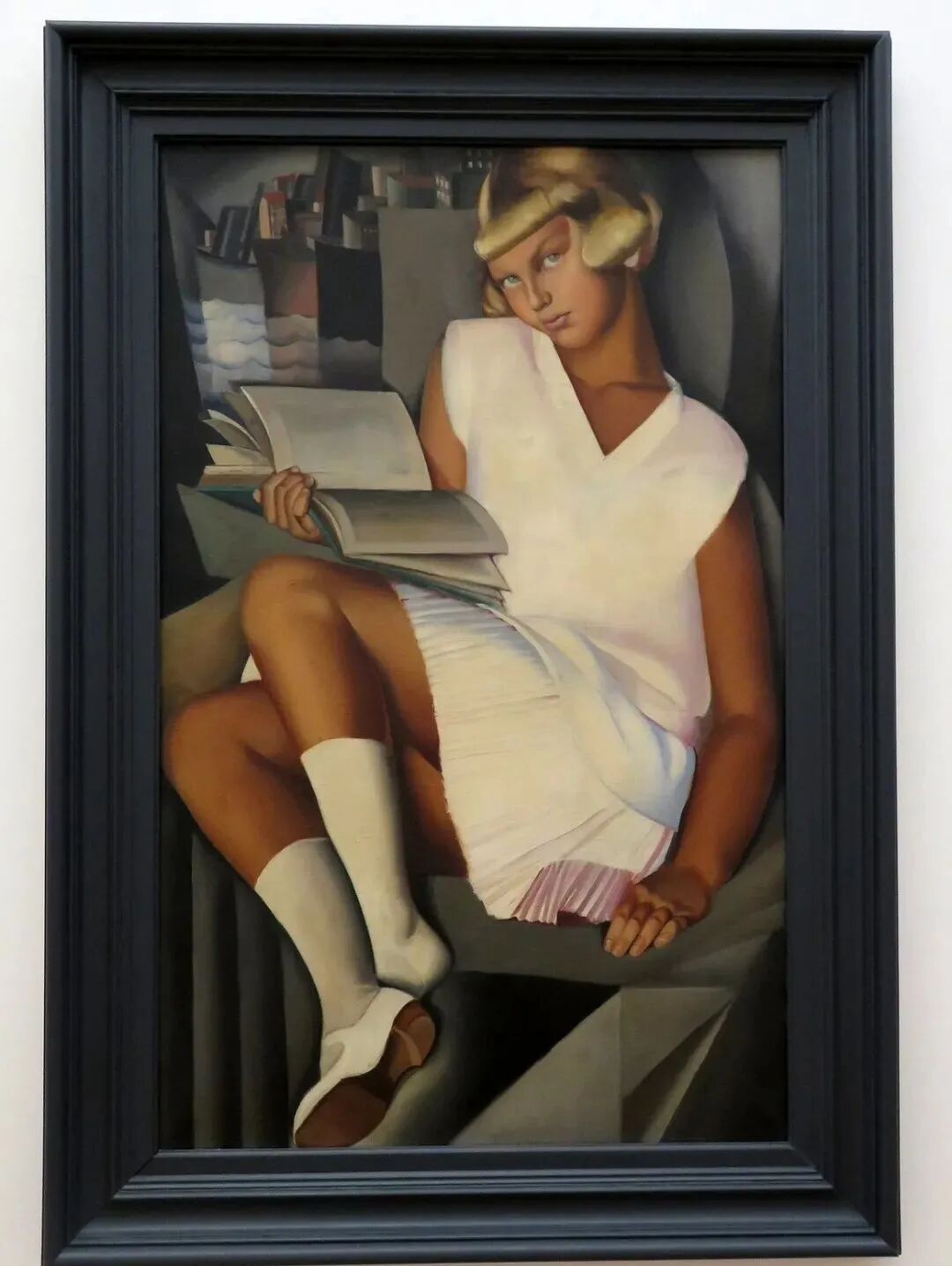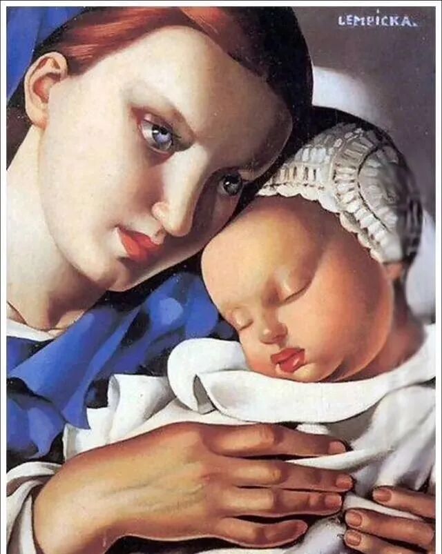 16岁时,塔玛拉嫁给了一位名叫塔德乌什·德·莱姆匹克的波兰律师,后两人因各种外在和内在的因素离婚!1933年,莱皮卡嫁给了她的第二任丈夫,年长她二十岁的男爵库夫纳,既是富翁,也是她画作的收藏者和支持者,人们因此称她为“手持画笔的男爵夫人”!下面这幅是她和律师生的女儿肖像,以后就再也没有生育过!