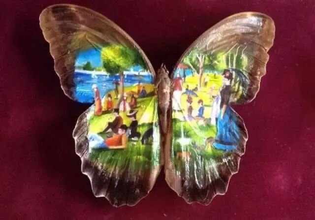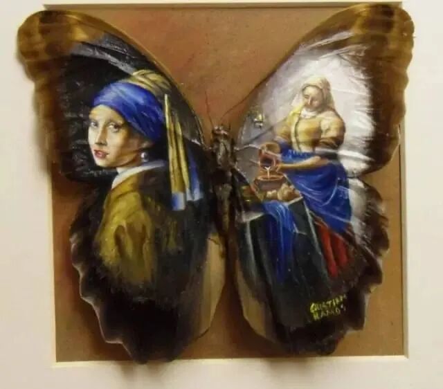 大家一起来欣赏一下,蝴蝶上的玛哈,还有蒙娜丽莎、抱银鼠的女孩,戴珍珠的女孩等,是不是很形象很逼真!