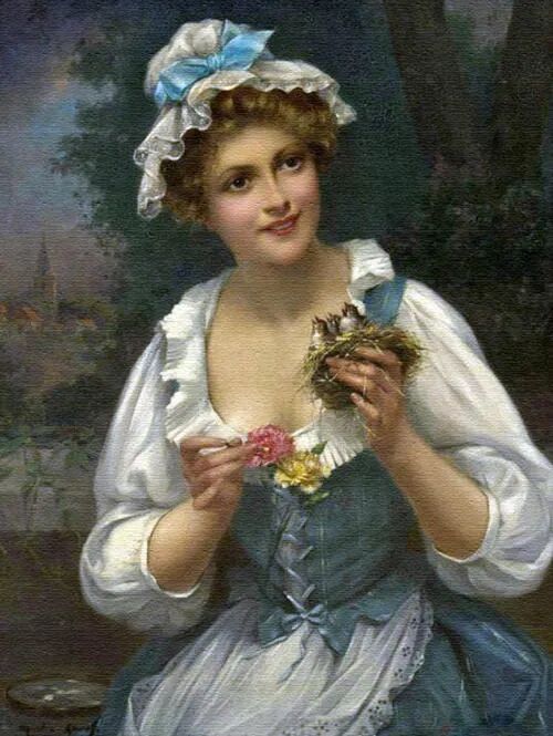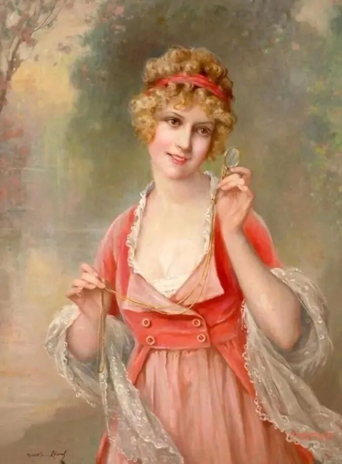 在卡维尔笔下的妙龄少女,大多数都是身穿华丽服饰的大家闺秀,在暖色调的烘托下,显得温情可人唯美!