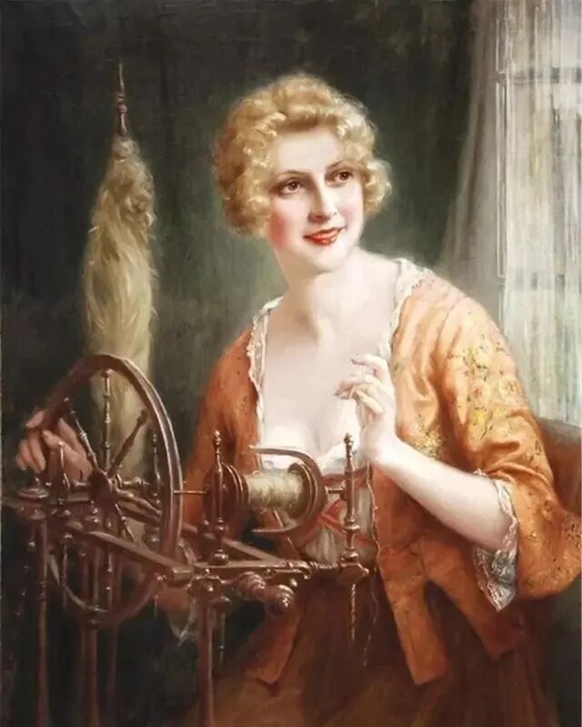 纺纱织布的女子也是这么美,笑容如此灿烂,很好地体现了劳动也是一种享受,收获了精神上的喜悦!