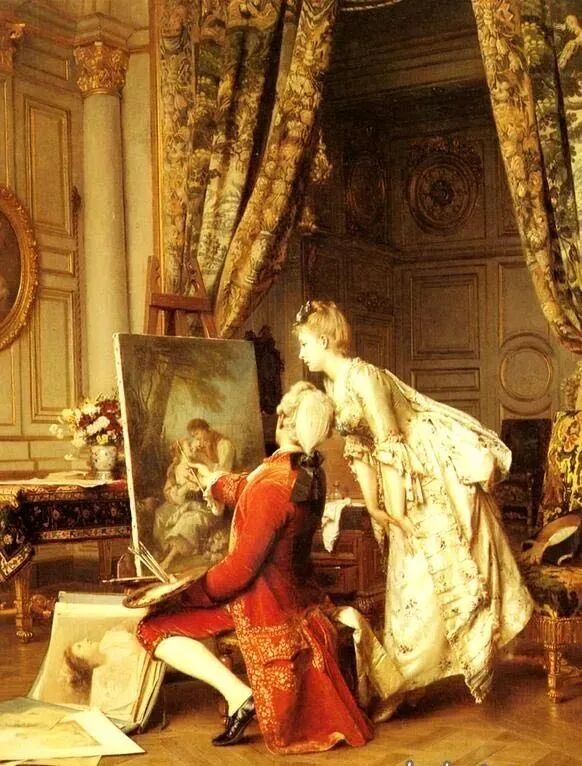 这幅取名为《艺术家的崇拜者》,艺术家画的是一对恋爱中的情侣,而他和身旁的女子关系也很暧昧,这就构成了画中有画的场景,可谓是别出心裁!