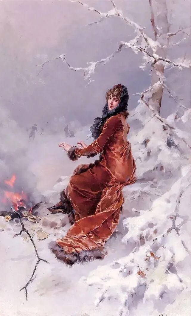 冰天雪地,这名红衣女子为何一个人坐在这里,阵阵寒气袭来,她是在生火🔥取暖吗,还是代表什么呢,画面充满了悲凉的气氛!