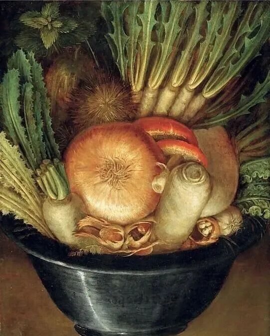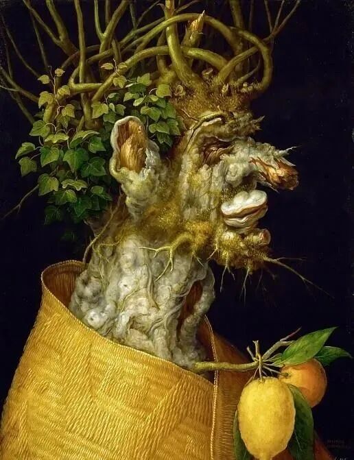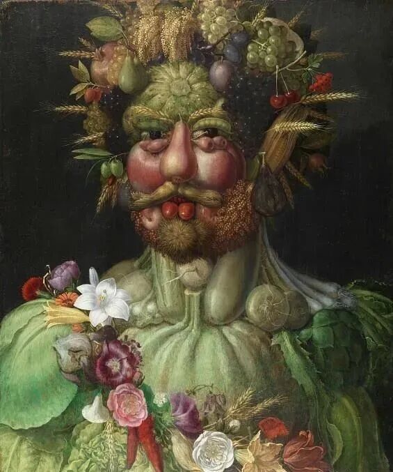 这是一幅真实组合的头像,是皇帝鲁道夫二世的肖像画,这是由各种鲜花💐、蔬菜、水果、树木等各种植物混合在一起的头像,在当时吸引了很多人的眼球!