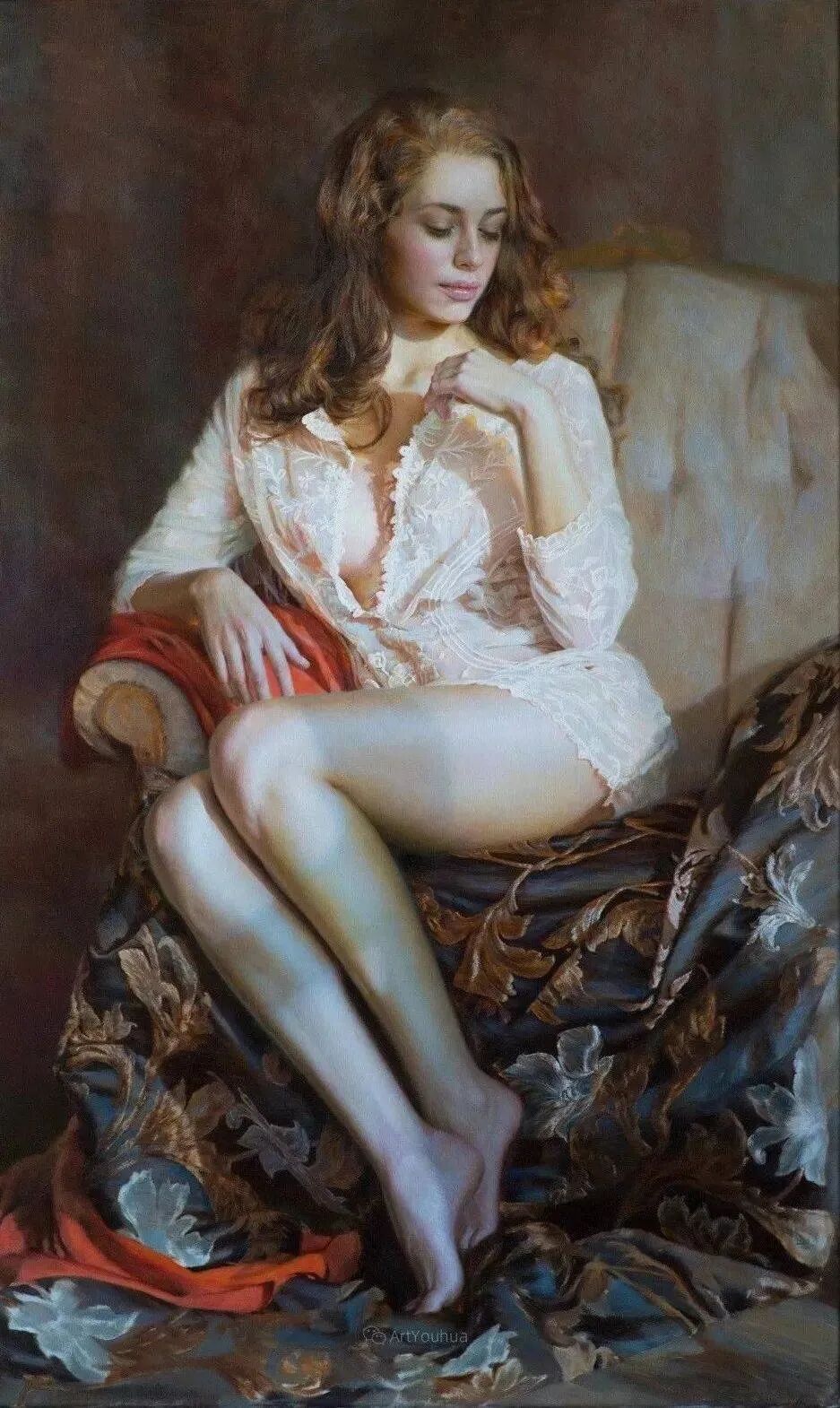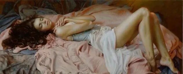 玛丽娜创作的主题主要是女性,她的人体油画,展现出了女性特有的各种情态、媚态,画面香艳之极!
