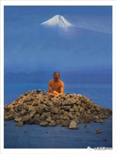 2009年,他把身体埋在999块石头中,他在冥想中完成从福冈美术馆前往富士山的旅程,模拟中国古代文人的“卧游”!
