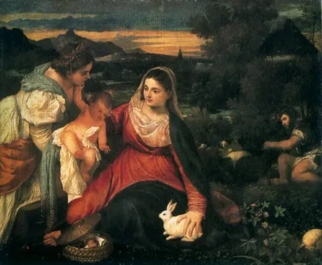 意大利画家提香画作《圣母子与凯瑟琳和一只兔子》,珍藏于巴黎卢浮宫!
